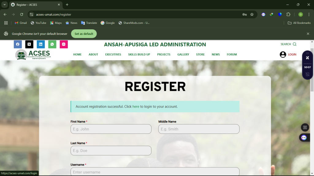 The ACSES UMaT website was developed as a central hub for student engagement, communication, and access to essential resources. The platform streamlines activities, enhances user experience, and promotes collaboration among members.